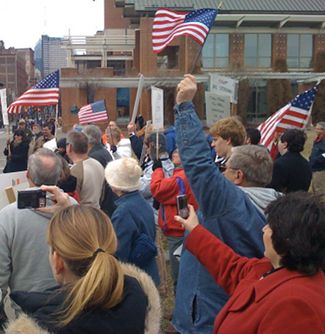 Not saying either is not patriotic, but tea party protesters seem to revere the symbols and traditions on their country a good bit more than the anti-war protesters I’ve seen.